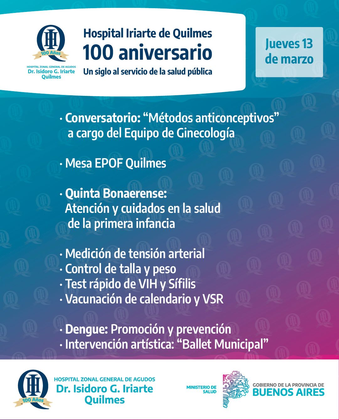 Actividades por los 100 años del Hospital Iriarte de Quilmes.